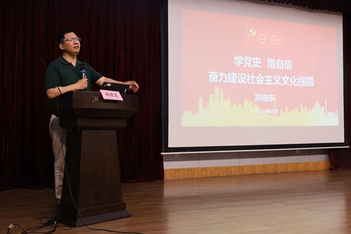 郑晓东书记讲授“学党史,增自信,奋力建设社会主义文化强国”主题党课,阐述了我国“文化强国”建设的发展历程及其在社会主义建设新时代的重要意义,分析了文化强国建设对于社会主义建设的基础性作用,希望同学们以党史学习教育活动为契机,继续加强理论武装、提升人文素养、增进文化自信,投身社会主义文化强国建设的伟大事业。