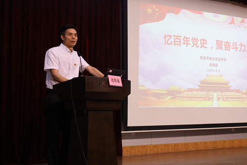 郑群雄书记讲授“忆百年党史、聚奋斗力量”主题党课,结合中华民族不同历史时期的社会制度,带领同学们回忆中国共产党从救国到富国再到强国的伟大征程,深刻感受这用鲜血和汗水、坚强和智慧书写的奋斗百年,是筚路蓝缕、披荆斩棘、砥砺前行的辉煌百年,是转折中开创新局、奋斗后赢得未来的百年。表示如今同学们更要牢记“为人民谋幸福,为民族谋复兴,为世界谋大同”的初心使命,传承红色基因,发扬奋斗精神。